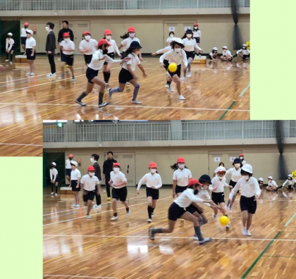 子どもたちは3コートに分かれて、ポートボールをしていました。