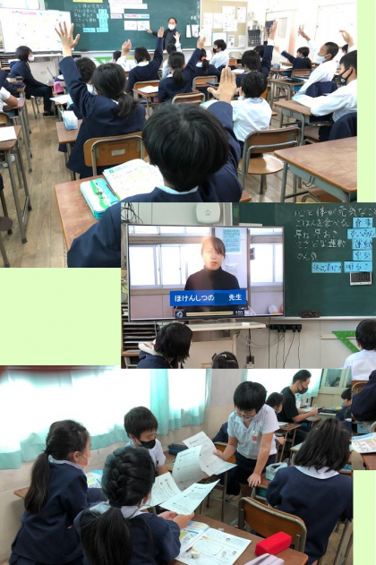 からだの健康のためには、どんな生活のしかたがよいのでしょうと、先生が子どもたちに投げかけると、ちゃんと次から次に子どもたちは正解を答えていきます。
