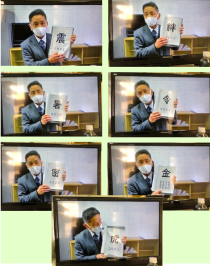 校長先生のお話では、これまでの「今年の漢字」に選ばれた漢字の紹介がありました。今日が、毎年清水寺で行われる「今年の漢字」の発表の日だそうです。