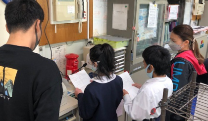 放送を聞いて、子どもたちが集まってきます。