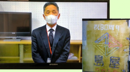 校長先生のお話では、島屋小学校がこれまで周年行事ごとに発行した記念誌と、10年前の航空写真を紹介されました。100周年記念の航空写真は、明日、行うことになっています。