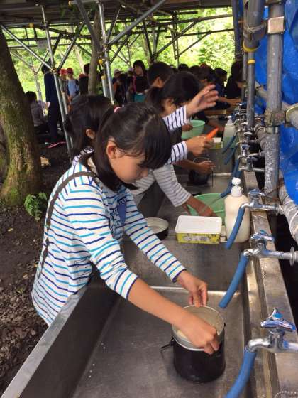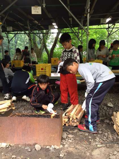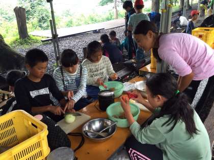 さあ、グループで協力して調理の開始です。包丁さばきに慣れている子もいれば、火起こしがやたら上手な子もいて、自分の個性の見せ所です。