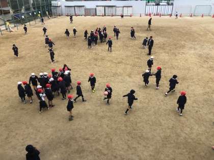 そんな寒い中、子どもたちはボール遊びでしょうか。