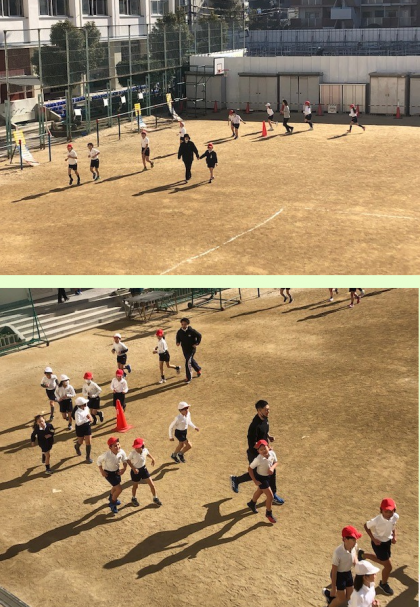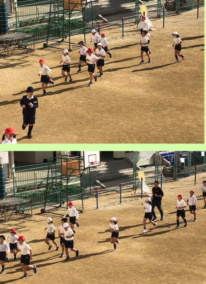 3時間目の運動場。しっかり走りこんでいるのは3年2組と3組の子どもたちです。