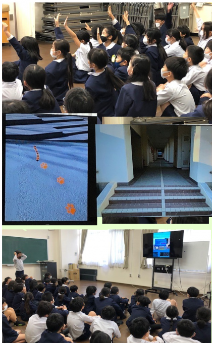 「何になりたい」という夢に挙げられる仕事もありますが、例えば街や建物の部分を作り支えている仕事もあります。今日来ていただいた方は、「タイル」を扱った仕事をされている方です。動物園の地面にキリンやトラの足跡を貼ったり、学校の階段のタイルを施工されたり、お仕事をしている写真を色々見せていただいてお話を聞いた子どもたちは、その身近さと素敵でカッコイイ仕上がりに心を奪われた様子でした。