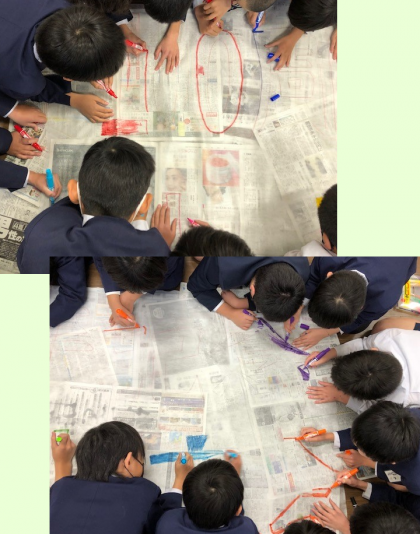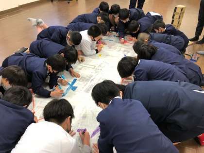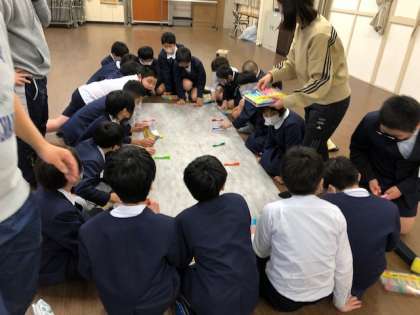 28日の土曜日に淀川河川敷で行う「かけ足大会」で、みんなを応援する横断幕の制作のためです。