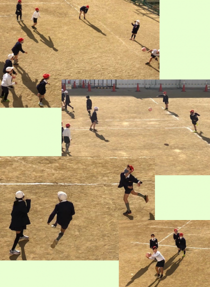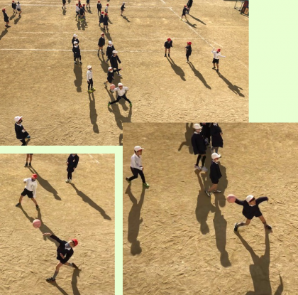 2年生の子どもたちが、3コートに分かれてドッジボールをしていました。