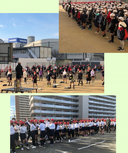 準備運動を運動場で行ってから、淀川河川敷まで向かいました。