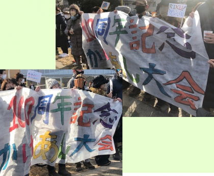 横断幕を応援の保護者の方に持っていただき、さあ、スタートです。
