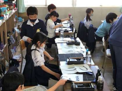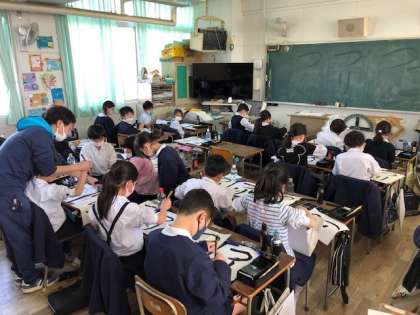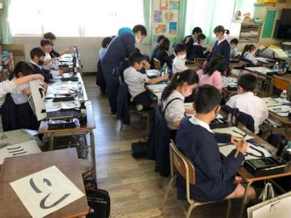 習字を始めるにあたって用意に時間がかかりますが、準備ができた人から書いていっています。