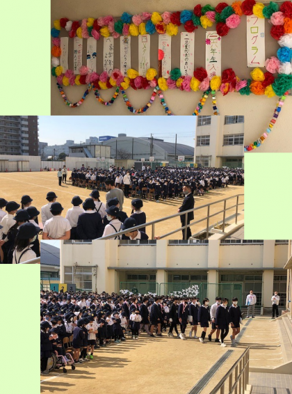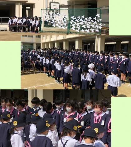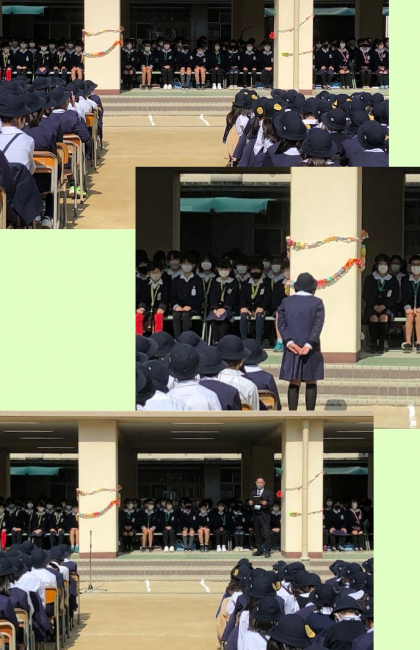 3・4時間目。全校みんなが運動場に集まり、6年生を在校生が送る会をしました。