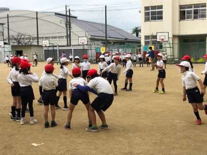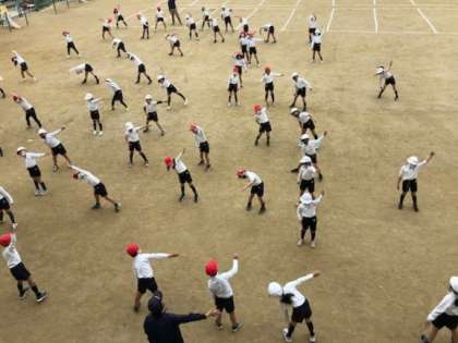 2時間目。運動場からかけ声が聞こえてきます。2年生の子どもたちが、体操をしています。
