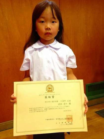 その後、島屋サッカークラブの4年生が大阪市少年スポーツ大会4年生の部で、みごと優勝したことを全校児童の前で披露しました。続いて、ピアノのコンクール「西日本4地区本選ソロ部門A1級」で奨励賞に輝いた2年生女子も紹介され、みんなの拍手をあびていました。