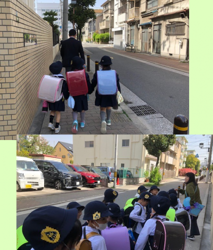 学校が始まった始業式の日から、1年生の子どもたちは集団下校をしています。