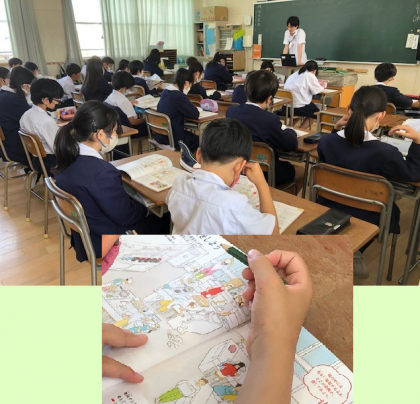 子どもたちも先生も、教科書を注意深く見ています。なんの教科でしょう。
