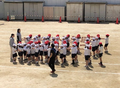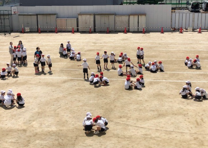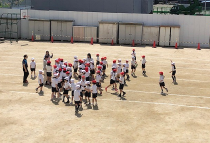 運動場に広がって、活動していました。