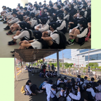 空は五月晴れ。6年生が、島屋小学校では一番最初に、校外学習に出かけました。