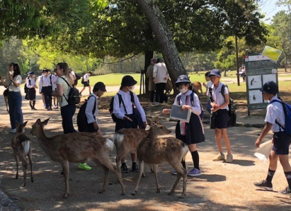 子どもたちは、なら仏像館の横を通って東大寺を目指しました。