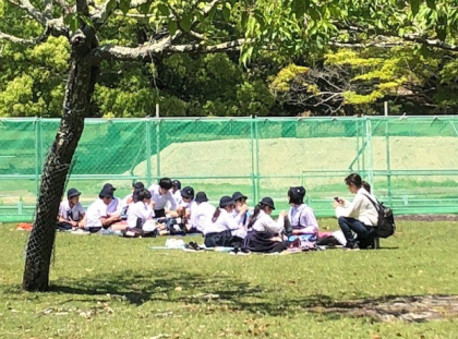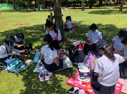 緑の草が、柔らかく優しい広場で、みんなでいただきました。