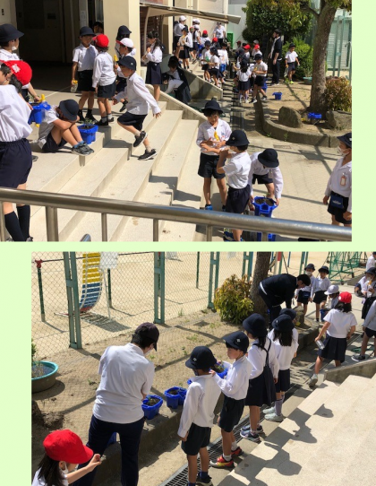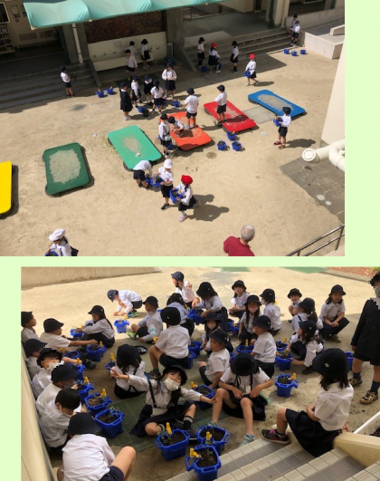 クラスごとに順番に、最後にはペットボトルでお水をあげて、仕上がりです。