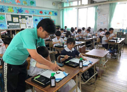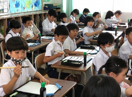 5時間目と6時間目。3年1組の子どもたちの初めての習字の時間です。