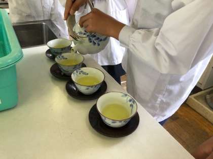 お湯を沸かし、茶の葉を入れた急須に注ぎ、しばらく置いて湯呑に入れる、という手順です。