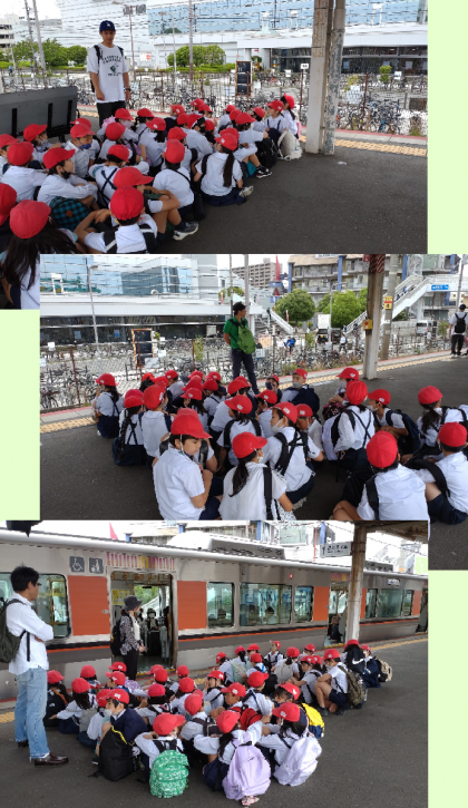 まず、西九条駅から大阪駅経由の外回りで森ノ宮駅まで行き、子どもたちは車窓から学習しました。