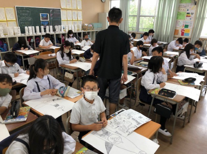 5年1組の5時間目。教室をのぞくと、子どもたちは画用紙を前にして、黙々と描いています。