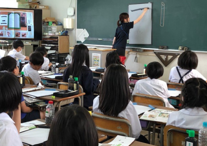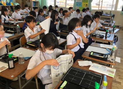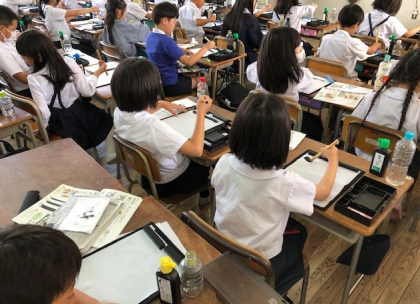 習字の道具を出して、今から、筆の運びを学習するところでした。