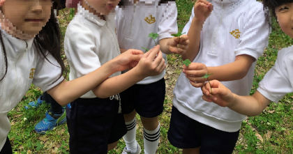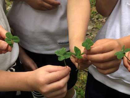 お弁当を食べた場所には、クローバーが生えていて、何人もが四つ葉のクローバーを見つけて、見せてくれました。