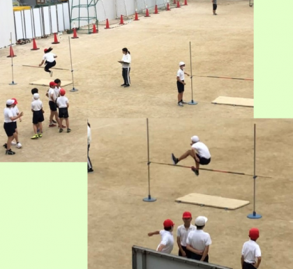 6年2組は走り高跳びです。