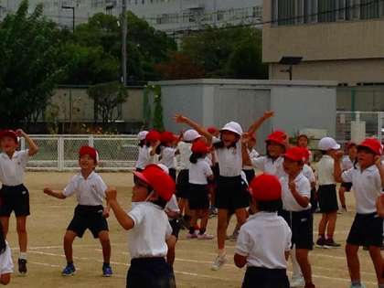 まずは、1年生「Happy Party Night」です。見どころは「元気いっぱい!」です。指導する先生も「元気いっぱい!」です。