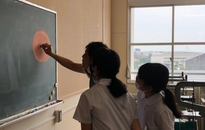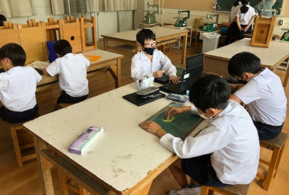 先生から黒板アートを教わっている人、パソコンから参考になるものを検索して、切り絵のヒントを拾おうとする人、みんなしっかり活動していました。