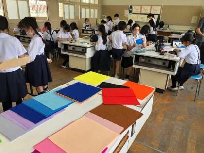 今日の活動はお裁縫。4年生は、物を手作りする基本中の基本、玉結びと玉止めを教わっていました。5・6年生は、用意されたカラフルなフェルトから自分の好きな色を選び、制作に入っています。
