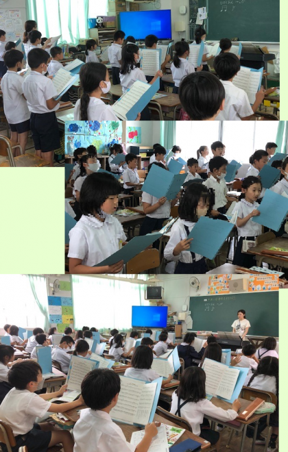 本校の創立100年を記念して作られた歌「ぼくらの未来」を、音楽の先生の指導で、子どもたちが歌えるようになってきています。