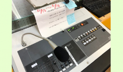 少し前に、「全校児童が歌えるようになりましょう」と、給食の時間に流れる音楽の中に取り入れて、流されるようになりました。放送室の機械に、取り組みを指示する紙が貼られています。。