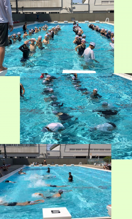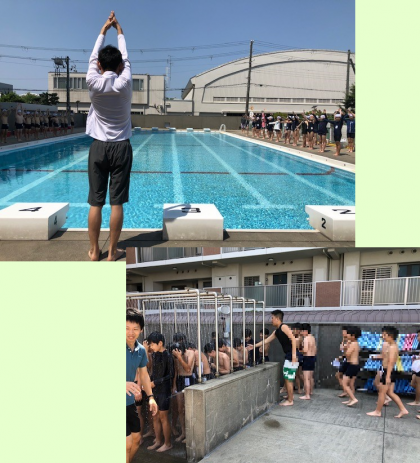 準備体操をしてからシャワーを浴び、順にプールに入ります。