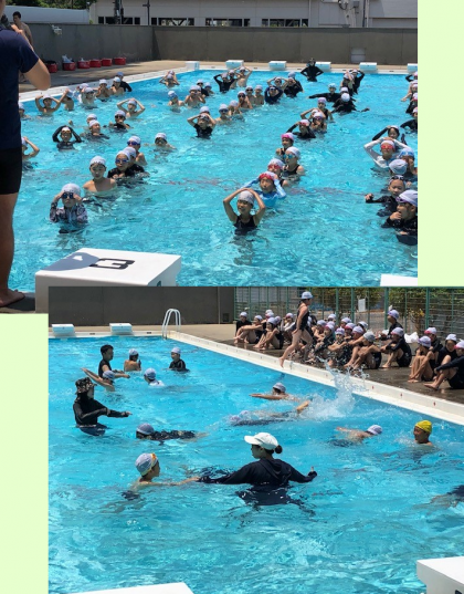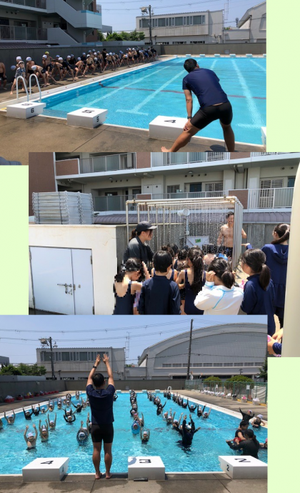 横一列の3人を今日のバディと確認し、プールに入りました。