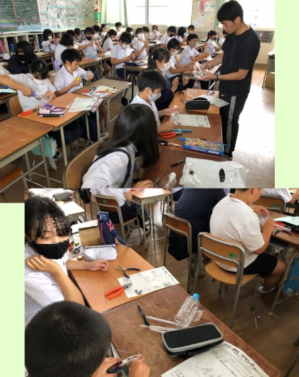 5時間目。6年3組・4組の子どもたちがペンチ片手に奮闘しています。図工の学習です。針金を、カクカクと折り曲げていこうとしているのでした。