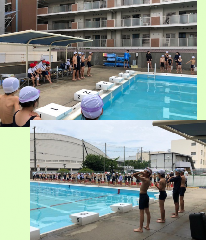 3時間目。1年生と6年生の2回目の交流プール。今日は1年生全員と6年1組の子どもたちで行いました。