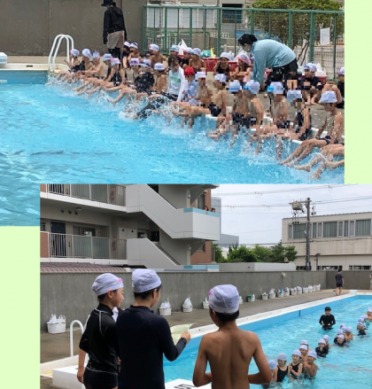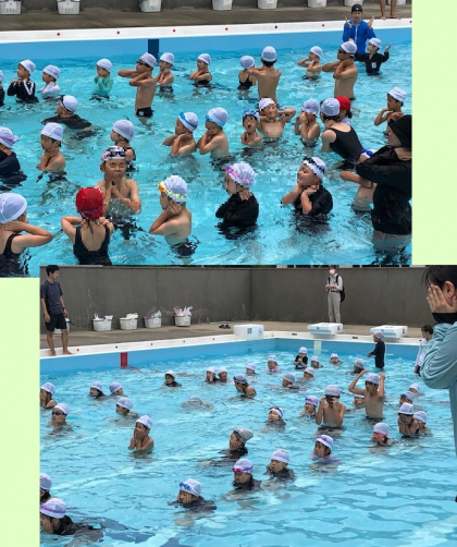 水をかけたり、足をバシャバシャしたり、水に慣れてきたところでプールに入ります。
