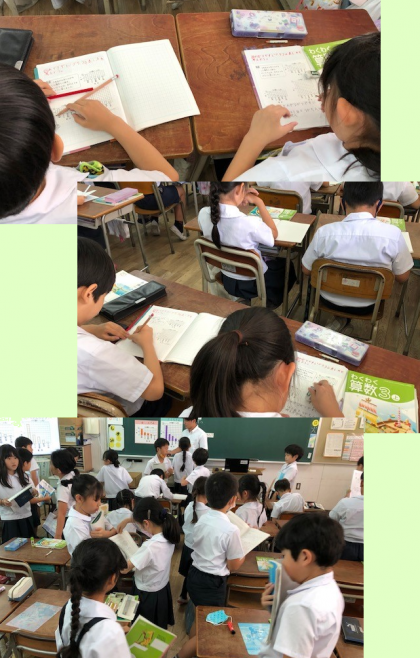 子どもたちは、わかりやすい方のグラフを選ぶだけでなく、選んだ根拠も考えてノートに書きます。それから、席を立って、友だちをつかまえて意見交換です。