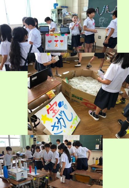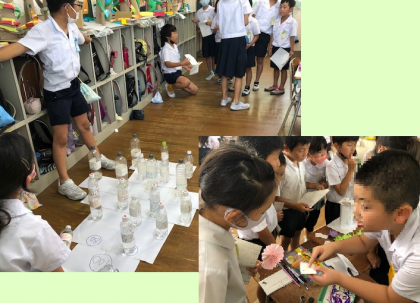3年生と4年生のきょうだい学年が、1学期も終わりということもあって、いろんなお店を出すほう、遊ぶほうとなって、この1時間を楽しみました。