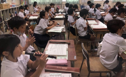5時間目。3年3組から笛の音が聞こえてきます。