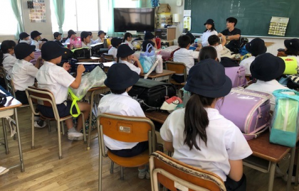 懇談会も今日が4日目。授業が終わり、ランドセルを机の上に、帽子をかぶって、帰る用意をすませた子どもたち。