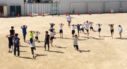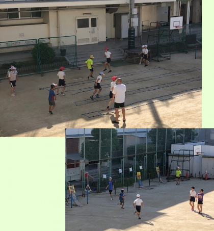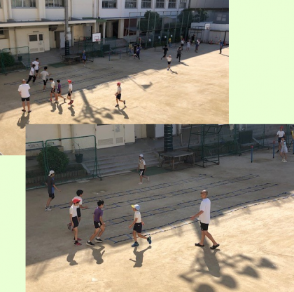 早朝から、陸上の大会をひかえた6年生の子どもたちが練習を始めています。