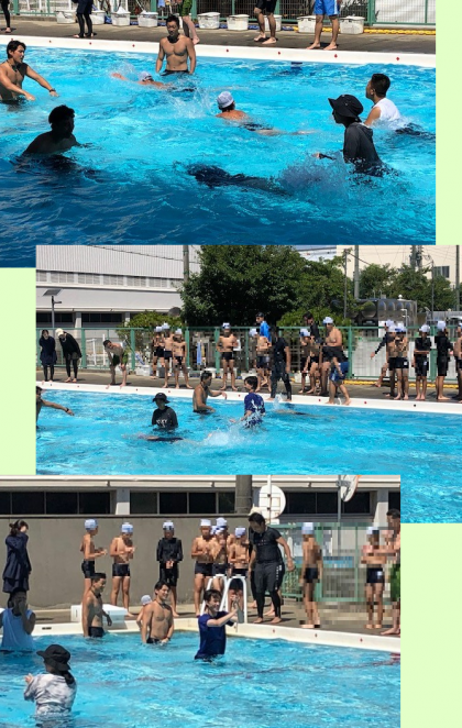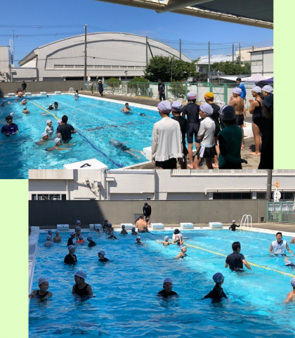 この水泳教室で25mを泳げるようになった人がたくさん出たようです。まだ泳げない人も、一生懸命頑張った時間は宝です。また来年、挑んでくださいね。