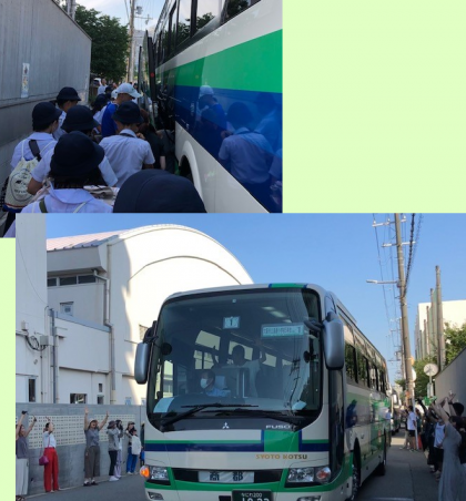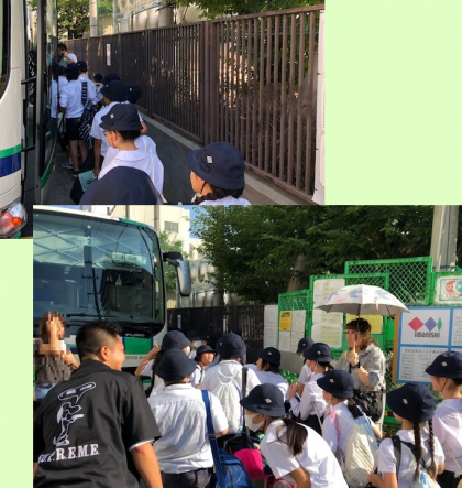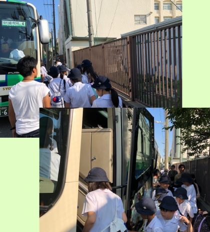 学校の西門前に待機していた4台のバスに乗り込んで、子どもたちは学校を後にしました。
