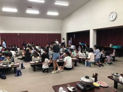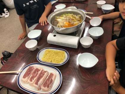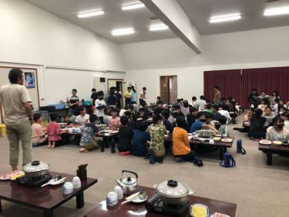 昨年は、パーティションで一人ずつ仕切られての夕食でしたが、今年は、みんなでワイワイと会食です。