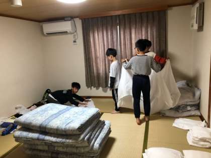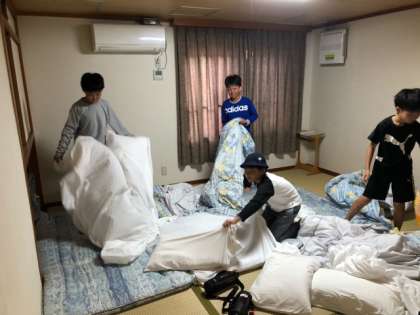 洗顔、歯磨き、寝具の片づけを自分たちでしています。